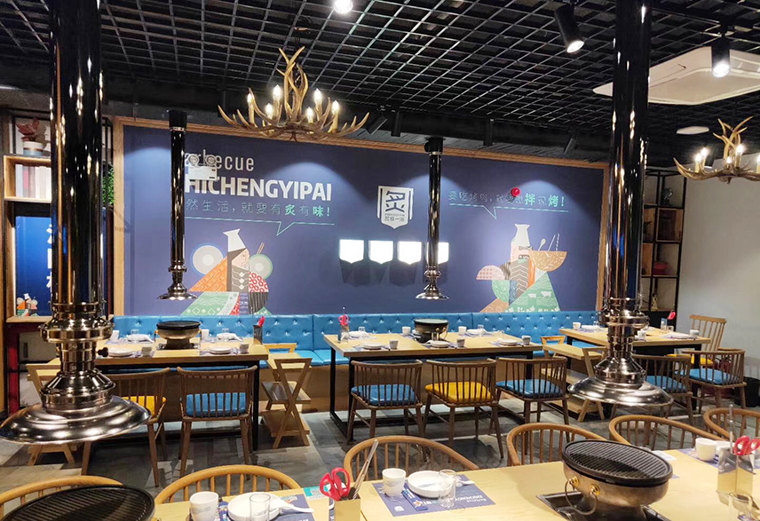 根據(jù)上述要求,品深餐飲設(shè)計(jì)炙成一派空間設(shè)計(jì)項(xiàng)目組為了實(shí)現(xiàn)所提出的四大目的和要求,在以下5個方面系統(tǒng)思考,通力合作,最終實(shí)現(xiàn)了炙成一派鮮明的空間形象,令人耳目一新,消費(fèi)者極為認(rèn)可。