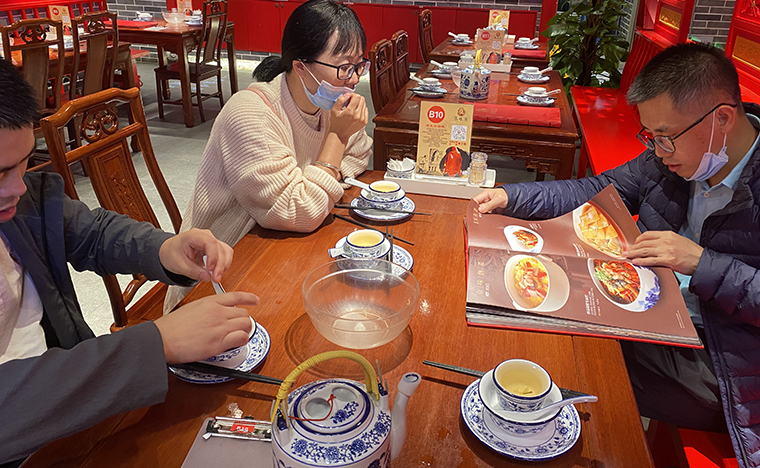 京味張的客群主要為家庭聚會(huì)、商務(wù)接待,餐廳的座位分布以包間、四人散座為主。家具使用傳統(tǒng)老北京的紫檀木中式圓桌,中式欄桿卡座,具有濃烈的中式復(fù)古氛圍。