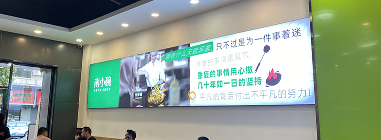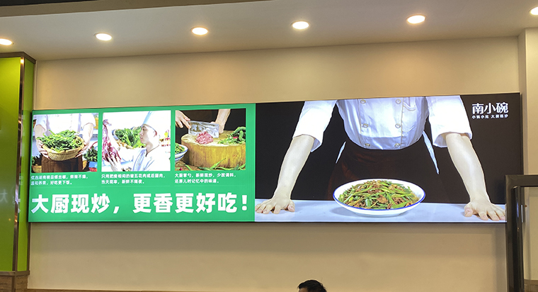 我們通過(guò)前期周密的市場(chǎng)考察和詳細(xì)的內(nèi)部調(diào)研,品深餐飲全案設(shè)計(jì)團(tuán)隊(duì)為南小碗提取了“小鍋小灶,大廚現(xiàn)炒”的核心訴求,并在門頭和店內(nèi)廣告畫面不斷重復(fù)強(qiáng)化“小鍋小灶,大廚現(xiàn)炒”小鍋小灶更有鍋氣,大廚現(xiàn)炒更好吃。并把食材原產(chǎn)地,和菜品制作過(guò)程在門店形象中不斷放大,重復(fù),讓消費(fèi)者記憶深刻。