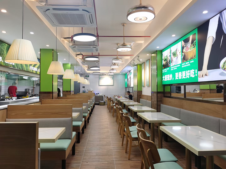 現(xiàn)炒快餐因?yàn)轭櫩妥灾鬟x擇菜肴、稱重,菜品,新鮮現(xiàn)炒;廚房是全開(kāi)放設(shè)計(jì),現(xiàn)炒過(guò)程一覽無(wú)余,新鮮現(xiàn)炒一覽無(wú)遺;門店環(huán)境也比傳統(tǒng)快餐更加舒適精致。