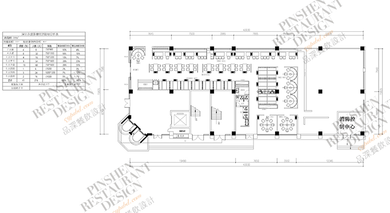 總面積500平方米,后廚加明檔一共140平方米,餐區(qū)360平方米,座位數(shù)214個(gè)