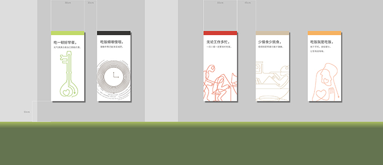 品深餐飲設(shè)計(jì)通過對匯鈺二食堂的調(diào)查研究,認(rèn)為在簡餐的空間中植入比較多的飲食文化,就如同媽媽的叮嚀一樣,不斷在你耳邊強(qiáng)調(diào)要按時吃飯、不要偏食挑食,要注意休息,少玩手機(jī),放松心情等。