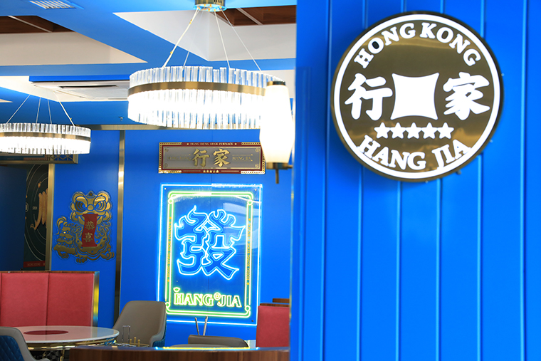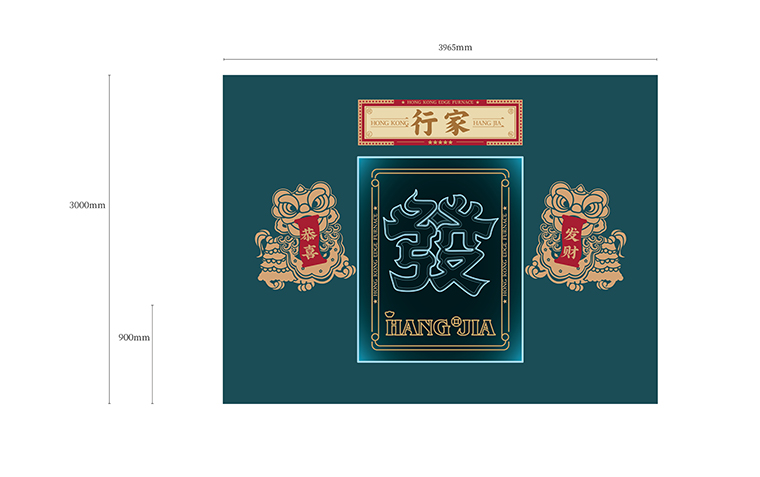 品牌記憶點(diǎn):南派醒獅+香港海洋藍(lán)+玫瑰金不銹鋼+品牌元素在空間中應(yīng)用