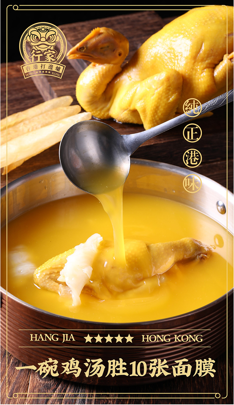 形象定位:香港老字號品牌,輕奢用餐環(huán)境,幾十年專注花膠雞,純正香港打邊爐。